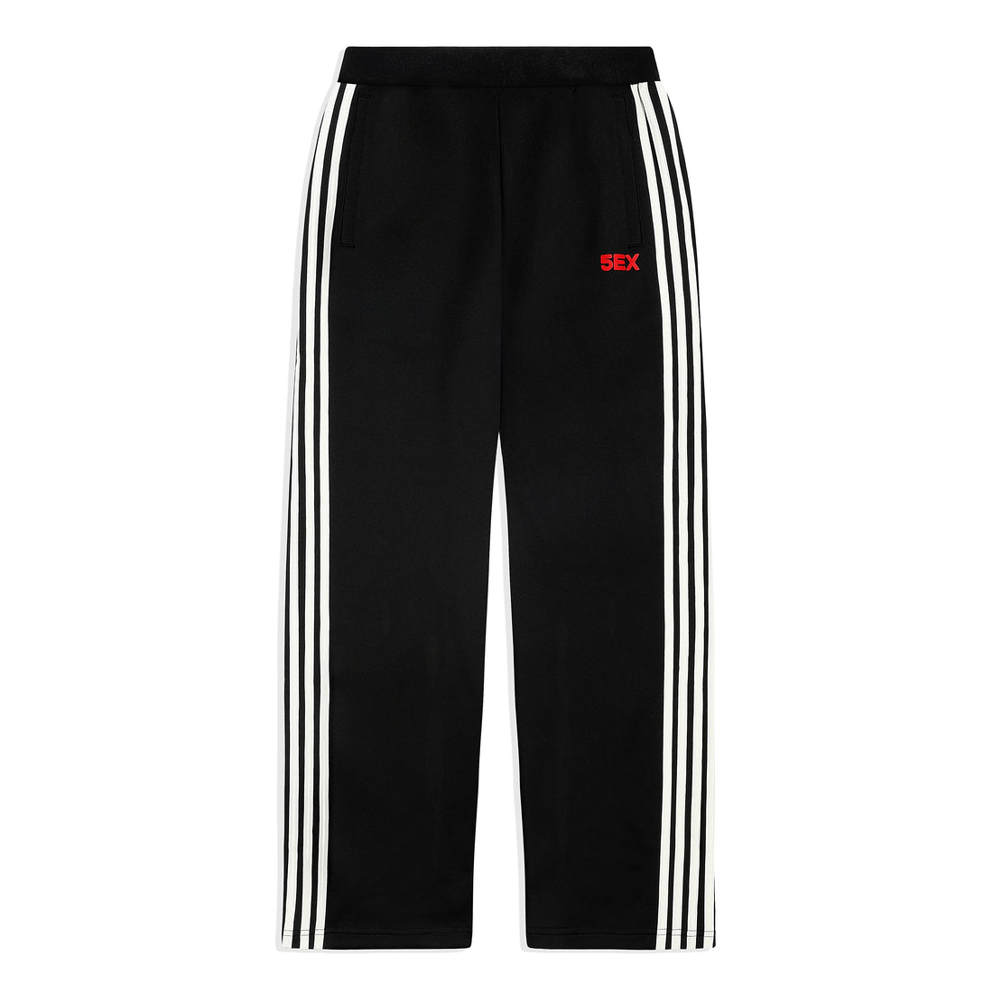 Athletic polyester fabric. Striped embellished side seam detail. Embroidered detail. Straight leg fit. Elastic waistband.