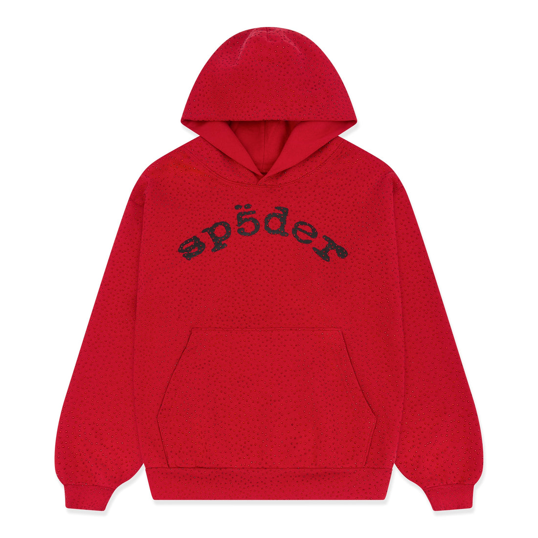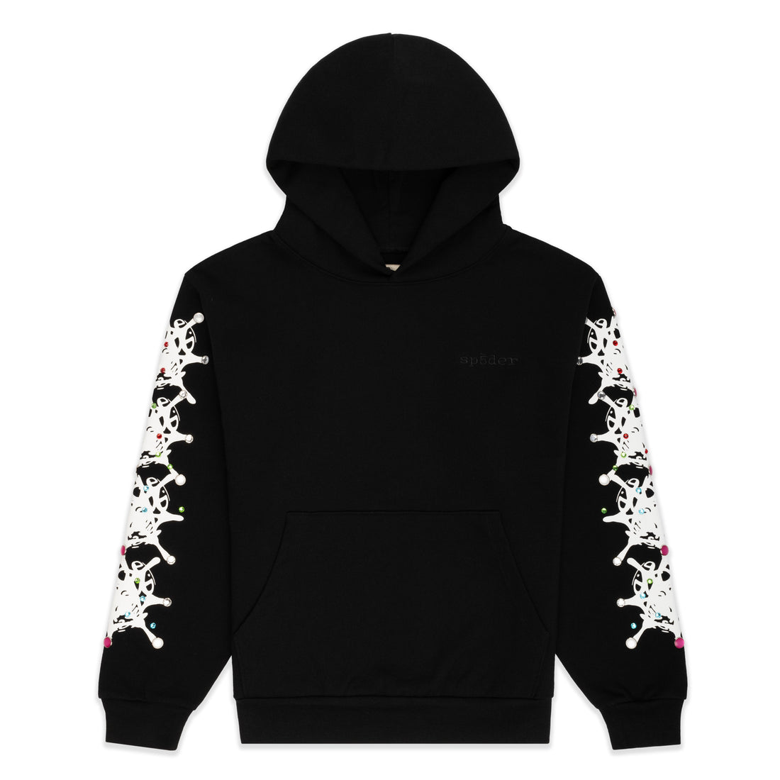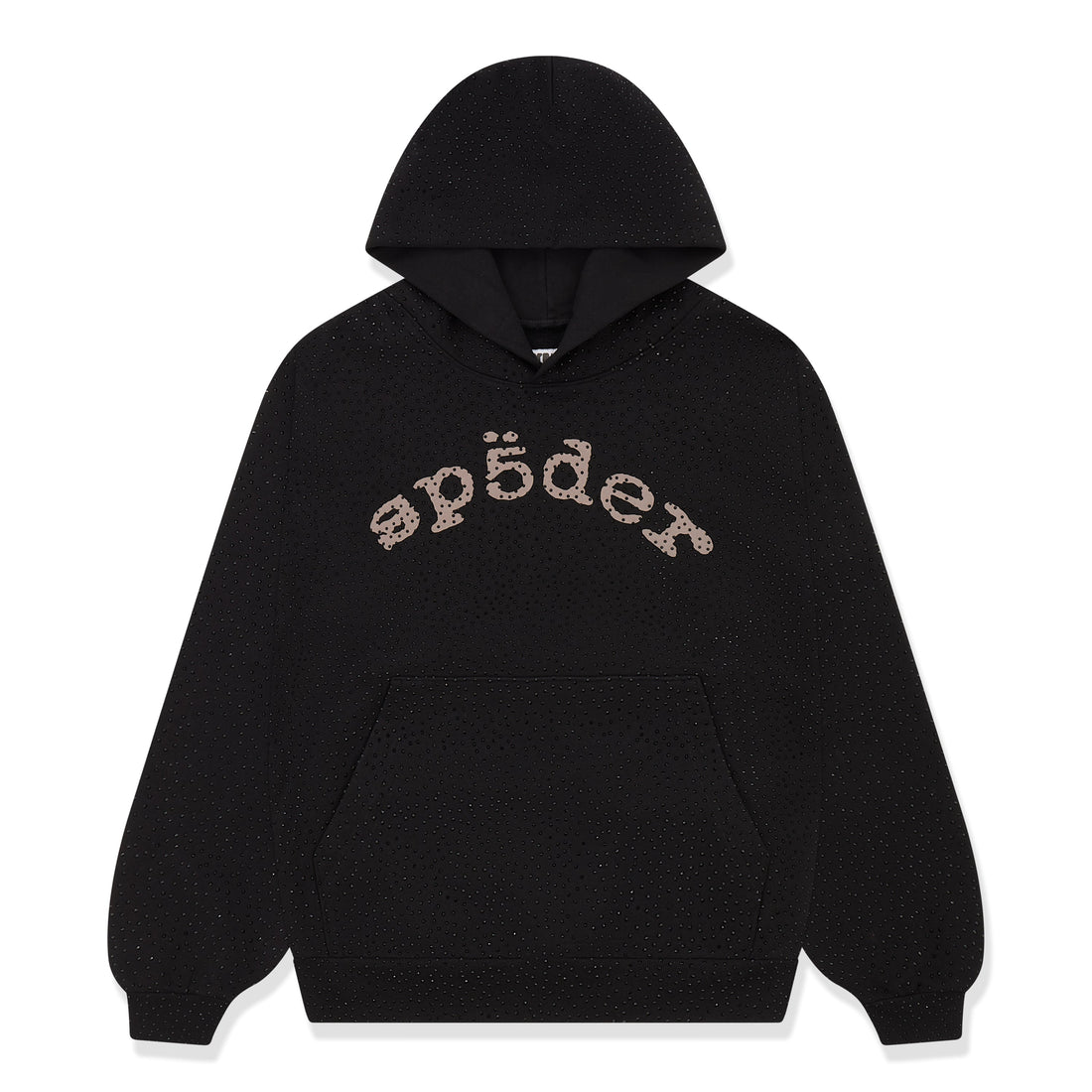 13oz, 100% cotton fleece. All over tonal rhinestone application. SP5DER text print across chest. Kangaroo pocket....
