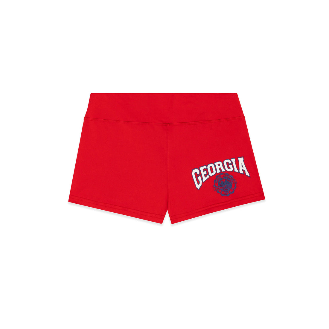 Stretch cotton jersey short. Elasticized waistband. Collegiate graphic on front.