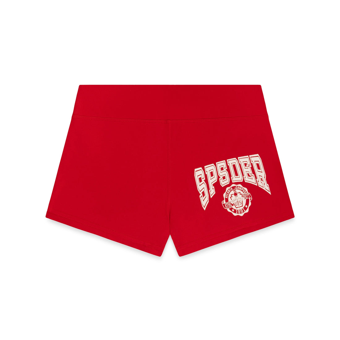 Stretch cotton jersey short. Elasticized waistband. SP5DER collegiate graphic on front.