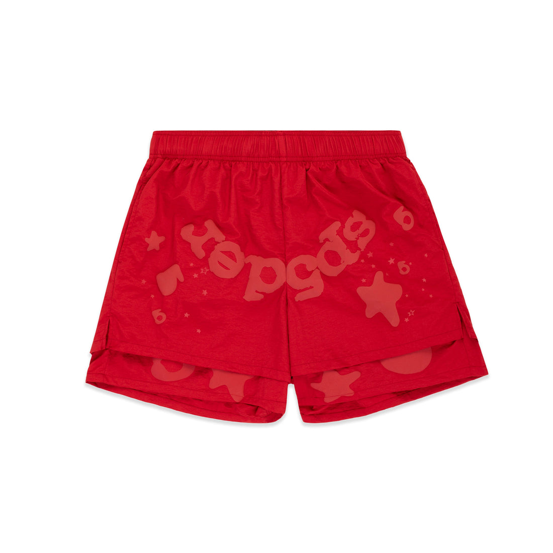 Classic SP5DER short. 4oz water repellent nylon. OG SP5DER text and web print.Logo and star...