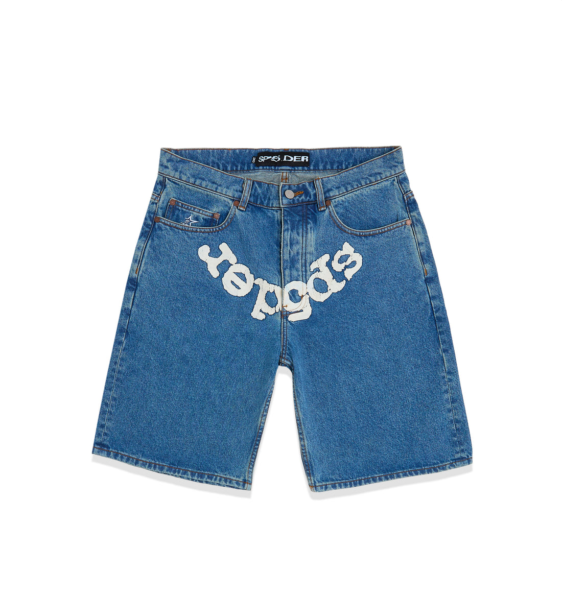 Classic blue SP5DER short.7oz French terry.Fabric milled in the USA.Custom sun fade wash.Custom chenille patches...