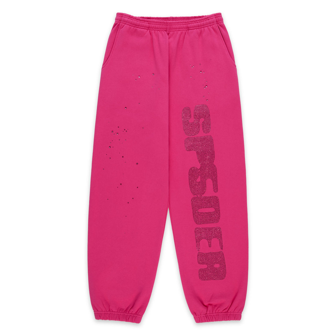13oz, 100% cotton fleece. “SP5DER” logo with rhinestone accents on leg. Sprayed-effect side stripe. Drawstring at...